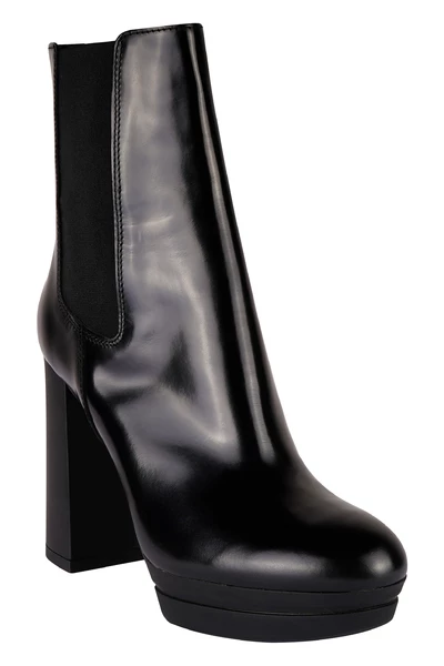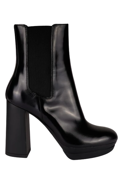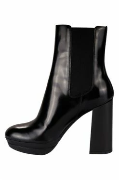 Vrouwen s vierkante hakhak laarzen in zwart leer met rubberen zool. Ideaal voor een modieuze en altijd trendy look. Hielhoogte: 10 cm gemaakt in Italië.