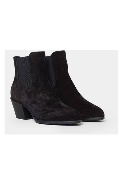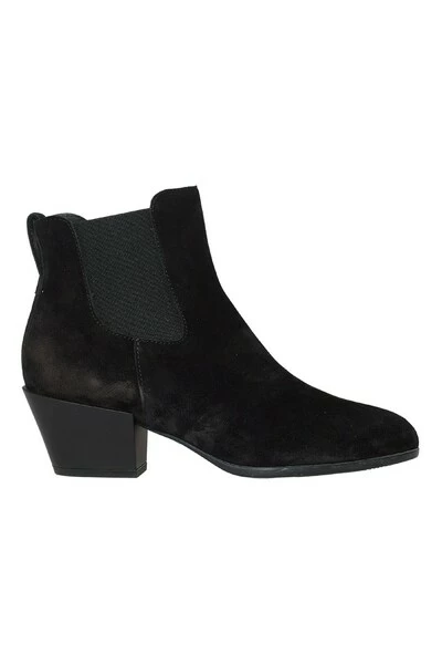 Hogan enkellaars in zwart suède. Rubberen zool. 5 cm hak.