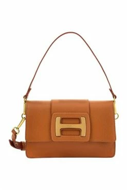 Hogan -tassen .. Bruine crossbody tas H monogram gesp met hogan -logo sluiting met klep en magnetische knop Guseted interieur met 2 compartimenten binnenste pocket afmetingen: 23,5 x 15 x 10,5 cm, verwijderbare handgreep, verstelbare en verwijderbare schouderband indicaties van zorg a