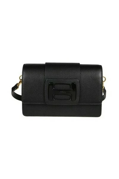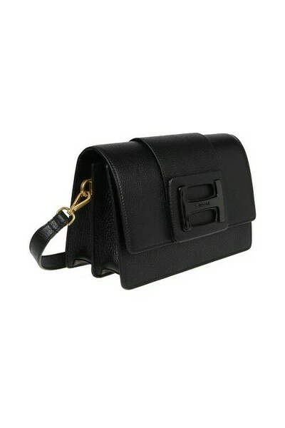 Hogan schoenen zwart crossbody Hogan h-bag vrouw gemaakt in Italië item gemaakt in getextureerde lederen h monogram gesp met hogan-logo sluiting met klep en magnetische knop koesterde interieur met 2 compartimenten binnenste pocket verwijderbare handgreep, verstelbare en verwijderbare schouderband indicaties van zorg en onderhoud inbegrepen Fabric Case inbegrepen
