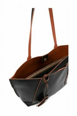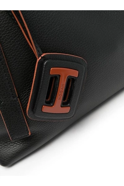Hogan-tassen .. Black H-Bag lederen shopper tas van Hogan met zwart, bruin, kuitleer, korrelige textuur, tweekleurige ontwerp, logo-tag, twee lange handgrepen, verborgen magnetische bevestiging, hoofdcompartiment en interne zip-fasterende zak.