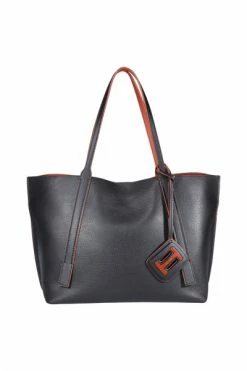 Hogan Black Woman Shopping Bag, H-BAG-model, logo, magnetische sluiting, binnenzipzak, contrasterende profielen