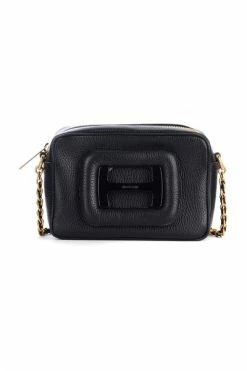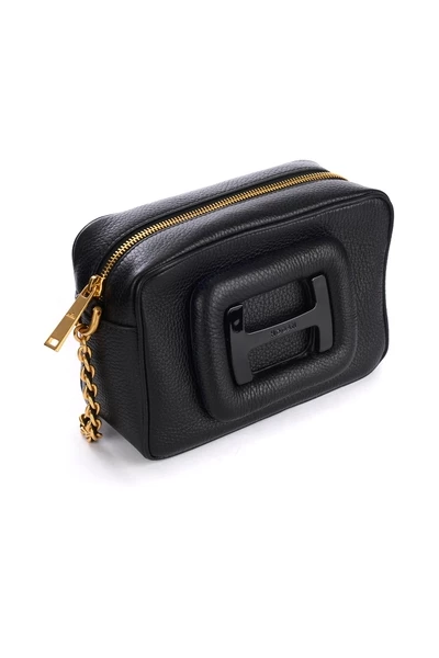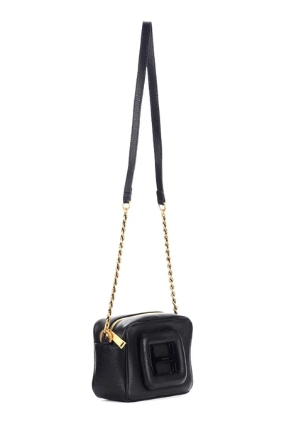 Hogan schoudertas h-bag model klein zwart leer. Coated gesp met ritszip katoenen voering in lederen schouderriem en gemaakt in Italië metalen afmetingen: 19 x 13,5 x 7 cm