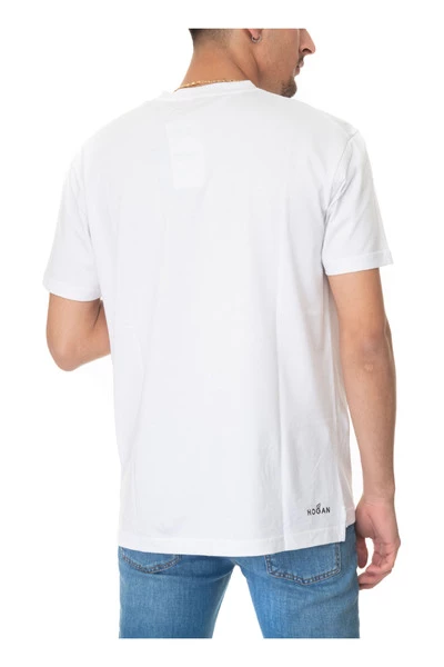 T-shirt met korte mouwen, Borst / borst Logo, Effen, Kleine zijopeningen, Logo op achterkant, Normale pasvorm, Samenstelling: 100% katoen, Merk: Hogan.