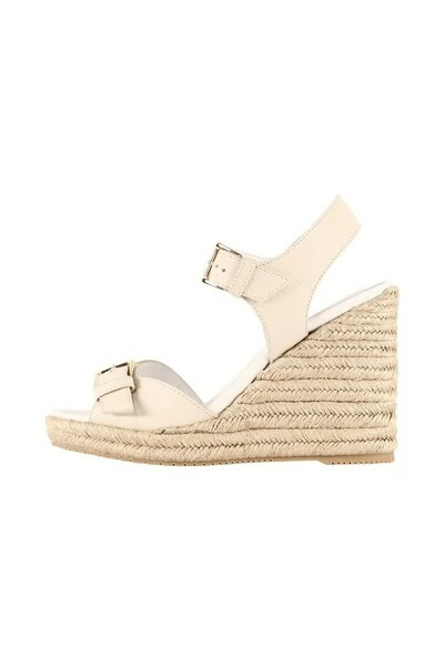 Leren sleehakken met platform bedekt met touw. Verstelbaar model met dubbele gesp. Hoogte: 11,5 cm Materiaal: Bovenwerk: Suède, Binnenzool: Leer, Buitenzool: Rubber Productstijl-ID: HXW5580DL20P7KB018 Deze beschrijving is automatisch vertaald.