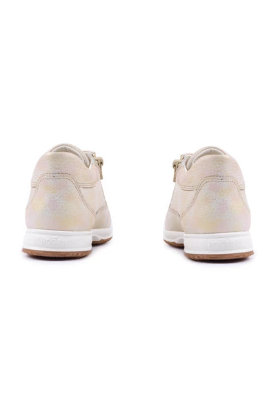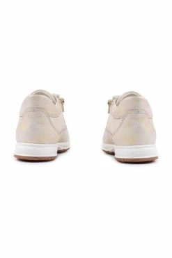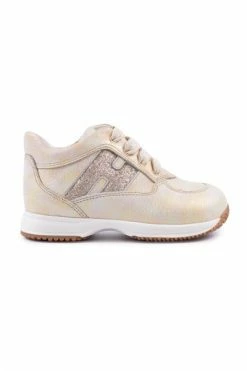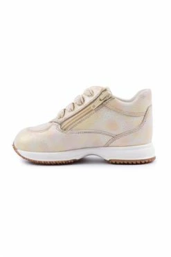 Hogan platte schoenen beige leer bovenste parelachtige effect zijde zipzijde h in glitter rubberen zool stoffen stof inbegrepen