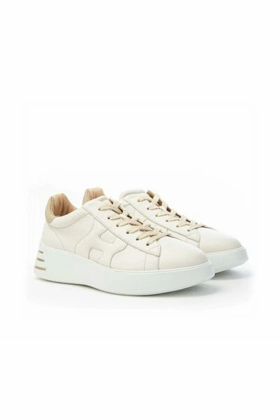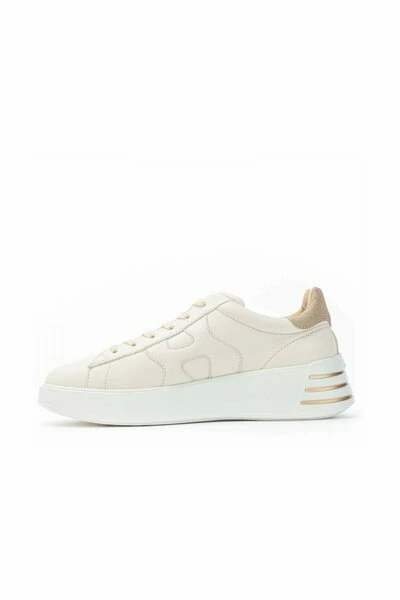 COD. HXW5640DN60RCB367T HOGAN HXW5640DN60RCB36T REBEL SNEAKER LAKEN SNEEKER VAKEN MAKEN in zeer zachte Nappa Ivory-kleur met details in Glitter Bovenkant: Kwastje met Goud Glitter Details Bodem: Rubber Hoogte 5 cm Binnenzool: Memory Foam Made in Italy
