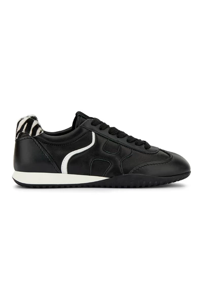 Hogan Sneakers Zwart Een nieuwe interpretatie van Hogan Olympia, gemaakt van zacht leer met ponyskin effect dieren details en een golvende zijkant H. Met een comfortabele memory foam binnenzool, ze worden geleverd met een rubberen buitenzool voor een frisse, dynamische look.- Dames Hogan Olympia-Z sneakers- Made in Italy- Lederen bovenkant- Zijkant H – Ponyskin effect details met dierenprint- Memory foam binnenzool- Rubberen buitenzool- Totale hoogte 3.4 cm- Inclusief onderhouds- en verzorgingskaarten- Inclusief stoffen stofzakje