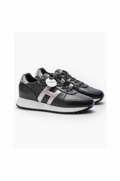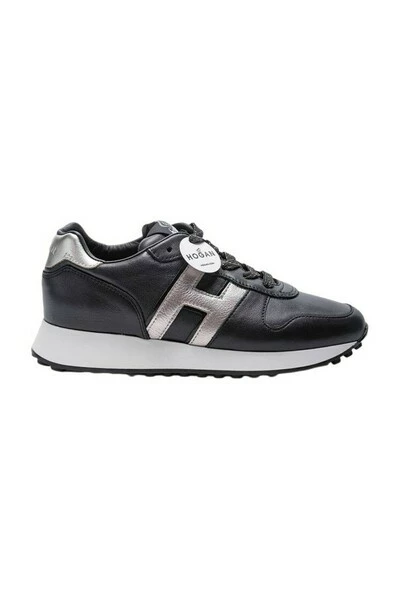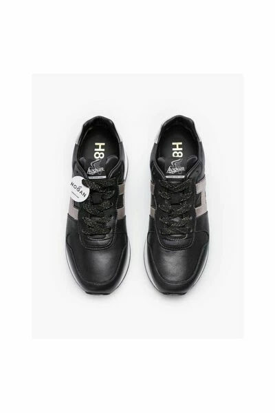 Collectie damesschoenen zwarte sneakers en licht goud in irriorsaal nappa leer en kalfsvlees leer – H86 Run – Hogan for Women. Het basketbal is versierd met de H in contrast aan de zijkant. De zool is gemaakt van rubber en de hiel meet 4 cm.