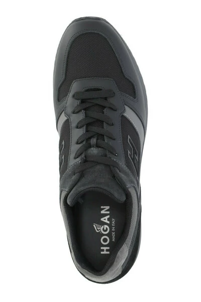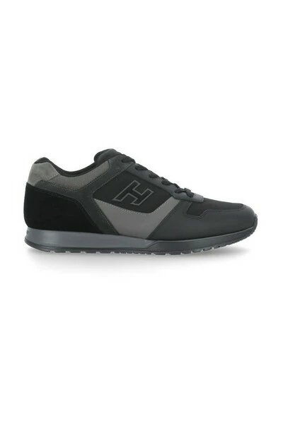 Hogan Sneakers Black – Black and Gray Men s Hogan H321 Sneakers – Glad leer en suede bovenwerk – Technische stofinzetstukken – Nubuck Details – Glokkeerde zijde H – Verwijderbare binnenzool 0.2 Ins – Rubberen buitenzool – Totale hoogte 1,5 Ins – Stoffe stofzak inbegrepen