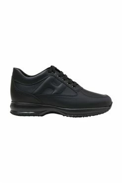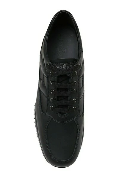 Hogan Scarpe Zwart leer interactieve sneakers van Hogan met een ronde teen, vooraan veterbevestiging, zijlogo-motief, merktong en geribbelde rubberzool.