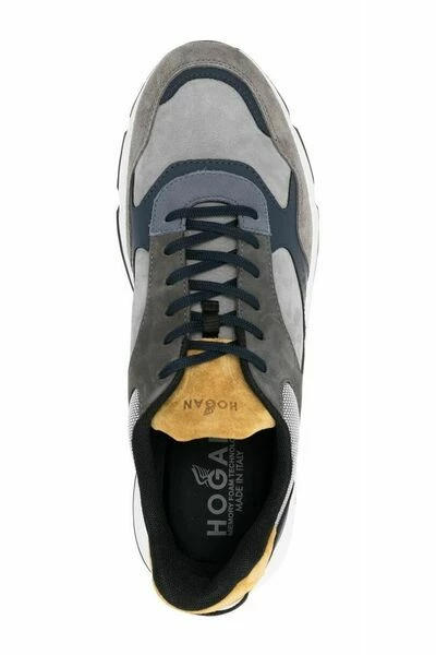 Hogan sneakers zwarte multicolour leer suede low-top hyperlight Sneakers van Hogan met het ontwerp met kleurblokpanelen, in reliëf logo aan de zijkant, logo-gedeboste tong, mesh lambrisering, ronde teen, veterbeperking vooraan, merkin binnenzool en dikke rubberen zool. Grootte UK Designer ID: HXM5630DM90 264 819O