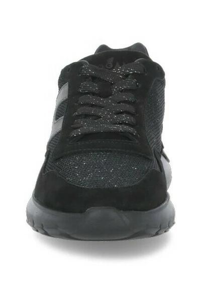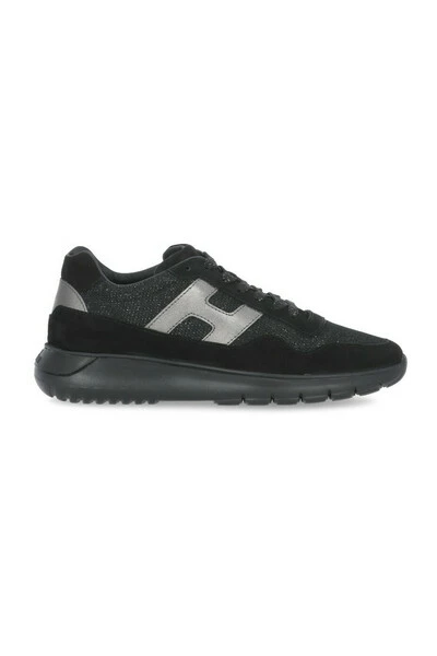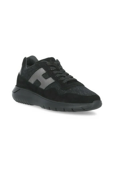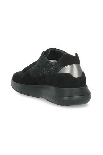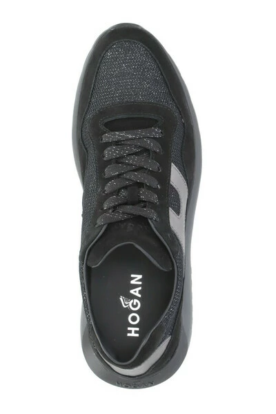 Hogan Black – Black Hogan Leather and Fabric Sneakers For Woman – Round Toe – Suede bovenwerk met tech -stoffen inzetstukken – zij metaalleer H – Logoed tong – verhoogde logboekzool (5 cm) – Lurex Laces Bevestiging