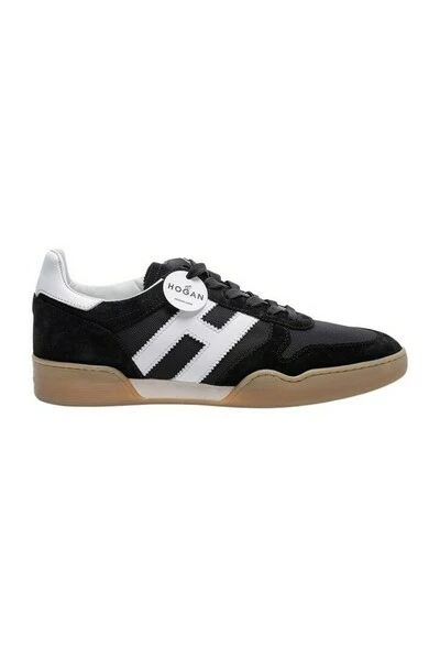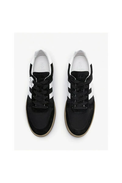 Collectie herenschoenen zwarte sneakers in leer en canvas gesneden – H357 – Hogan for Men. De schoen met de retro- en vintage geest heeft de H en de witte kleurbeupel. De zool is rubber. Dit product is in het VK -grootte.