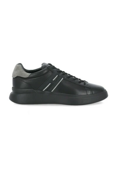 Hogan Sneakers Black – Black Hogan Leather Sneakers For Man – Round Toe – voor veters bevestiging – reliëf Hogan -logo op tong – zijtoon op toonhogan monogram – suede eather bij bovenste hak – traagschuim binnenzool – rubberen zool – rubberen zool – rubberen zool – rubberen