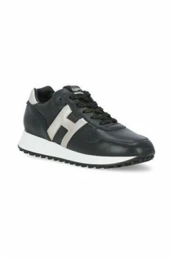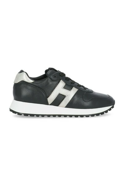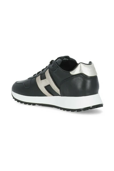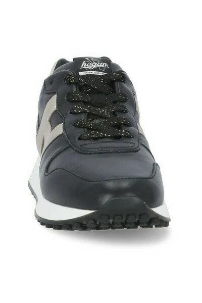 Hogan Black – Black Hogan lederen sneakers voor vrouw – ronde teen – zijkant gelamineerd leer h – logoed tong – logoed gelamineerd lederen bovenste hak – verhoogde zool (3 cm) – Lurex veters bevestigen