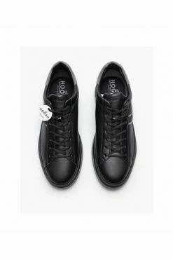 Collection herenschoenen sneakers – Essentieel – zwart met nappa lederen grijze aanrakingen en lederen korst, herenhogan. Het basketbal is versierd met de emblematische H gerestyliseerd en onderstreept met grijs om het verlichting te geven. De dikke zool is gemaakt van rubber en de hiel meet 4,5 cm. Dit product is in het VK -grootte.