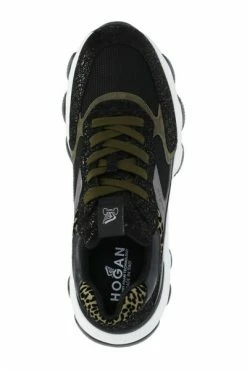 Hogan Sneakers Black – Black Hogan Suede gelamineerde lederen sneakers voor vrouw – Tech Fabric en metalen lederen inzetstukken – Suede leer en ingebouwde stofdetails met dierentienpatroon – Ronde teen – voorste contrasterende kleurvakjes bevestiging – zij in reliëf Hogan – Gros Grain Tab met Hogan Monogram At Tong – Intern traagschuim Fussbett – verhoogde rubberen zool (5 cm) – Verkocht met reserveveteres