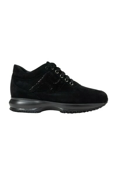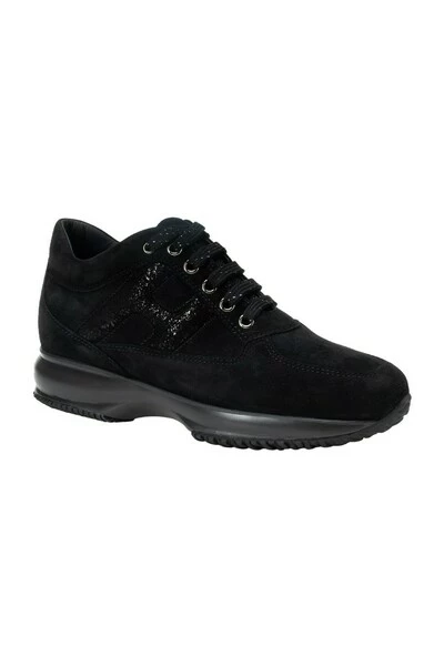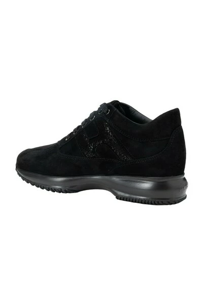 Hogan sneakers zwart gemaakt in Italië sneakers gemaakt van suède leer, met gelamineerde suede zijde H. blootgestelde stiksels en verwijderbare 1,2 cm fussbett. Rubberen zool.