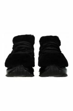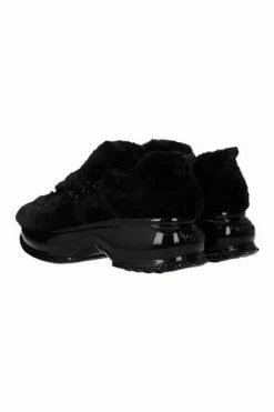 Zwarte sneakers van imitatiebont. Model met vetersluiting en detailzool in lakleer. Logo op de zijkant en op de achterkant. Afmetingen: Hoogte: 5 cm Materiaal: Bovenwerk: Nepbont, Buitenzool: Leer Deze beschrijving is automatisch vertaald.