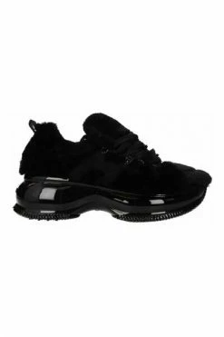 Zwarte sneakers van imitatiebont. Model met vetersluiting en detailzool in lakleer. Logo op de zijkant en op de achterkant. Afmetingen: Hoogte: 5 cm Materiaal: Bovenwerk: Nepbont, Buitenzool: Leer Deze beschrijving is automatisch vertaald.