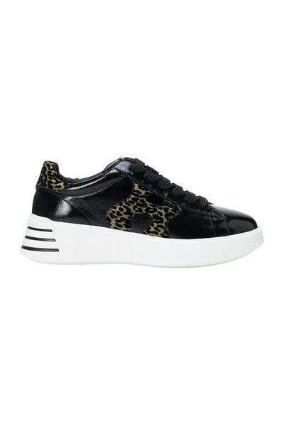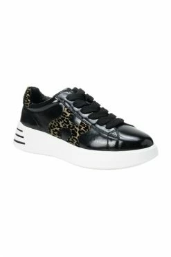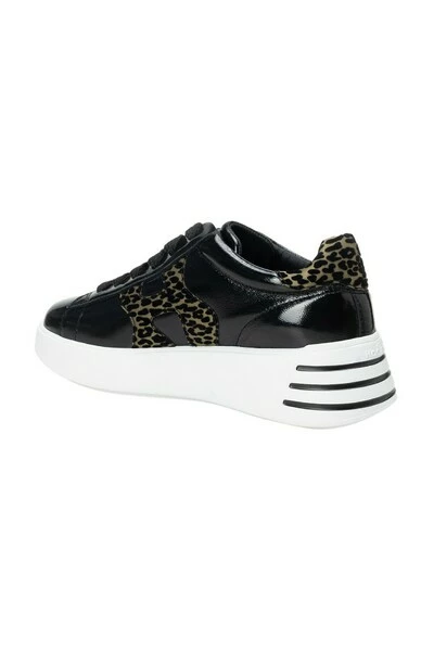 Hogan sneakers grijze sneakers met gelakt lederen bovenwerk met zijkant H en dierenprint ingeklede stofdetails. Memory Foam voetbed en rubberen zool. Gemaakt in Italië.