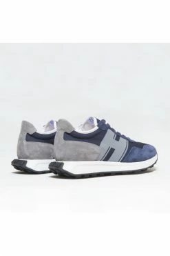 Modern Hogan Hogan Hogan Hogan Hogan Hogan met retro -suggesties gemaakt van suede en blauwe technische stof met spot in suède grijze bovenste bovenste en laterale serigrafata he -Rable Sulla eva ultrallight fussbett fustblable inmemory schuim comfortabel/groot gemaakt in Italië