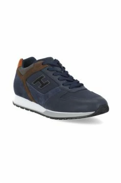 Hogan Sneakers Blue – Blue Hogan Leather Sneakers For Man – Round Toe – Leters Bevestiging – Tong met logo – Side verhoogde H – Tech Fabric Inserts – Suede lederen details – Glokkeerde bovenste hak – rubberen zool