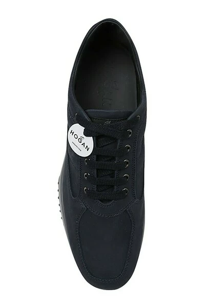 Blu Navy Sneakers van Hogan met een ronde teen, vooraan veterbevestiging, zijlogo-motief, merktong en geribbelde rubberzool.
