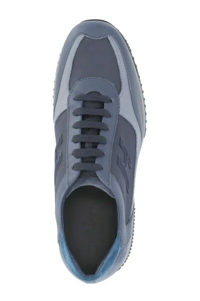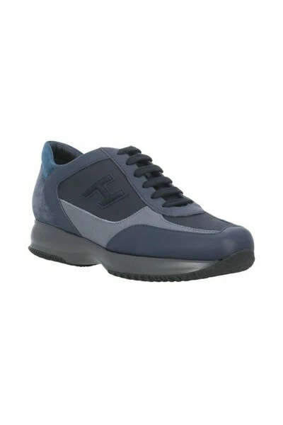 Hogan sneakers – Hogan blauw glad leer en suede man s sneakers – Tech Fabric Inserts – Nabuk Details – Lace Up bevestiging – gemodificeerde patch op tong – opzij gevoerde iconische H – Verwijderbare binnenzool (2 cm) – rubberen zool – zichtbare bovenste stitches