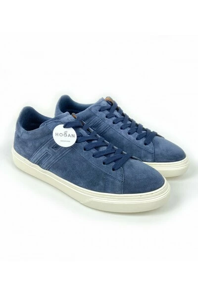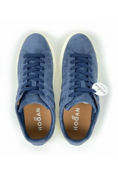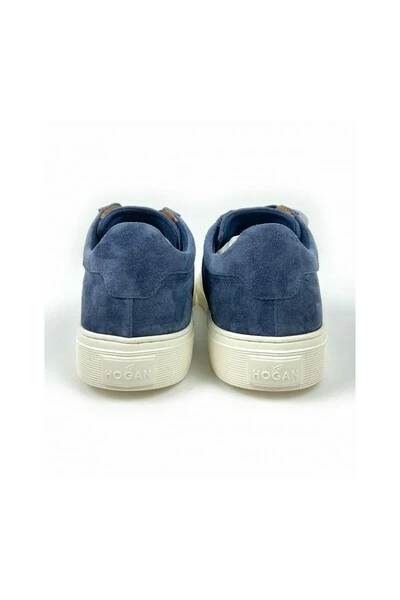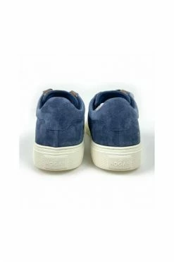 Hogan sneakers. Blauwe schoenen met gedraaide leer en witte rubberen zool.