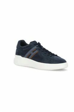 Hogan Sneakers Blue – Blue Hogan Suede Leather Sneakers For Man – Leters Bevestiging – Zijkant contrasterende kleur verhoogd H – Embossing Logo op Tong – Glad Leathet bovenste hak – Traagschuimtechnologie Fussbett – Contrasterende kleur Rubberzool