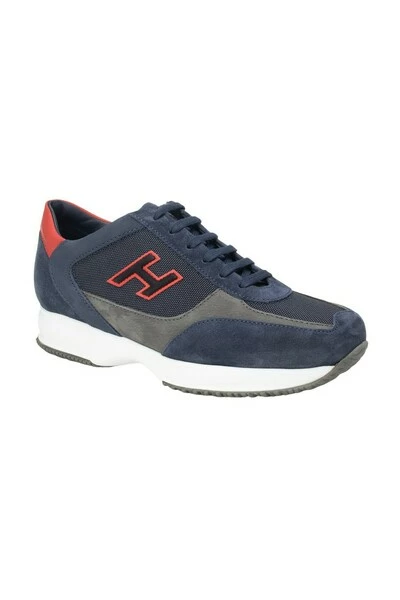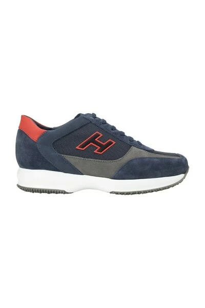 Hogan sneakers sneakers met suède bovenste en technische stoffen inzetstukken. Nubuck lederen details, blootgestelde bovenste en reliëfzijde H. Verwijderbare 12-mm voetbed en rubberen zool.