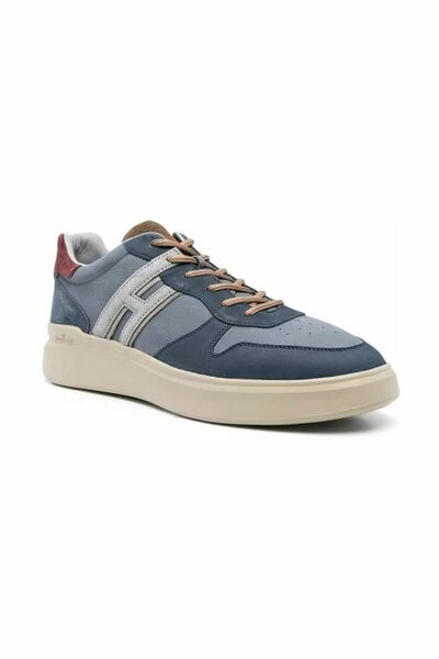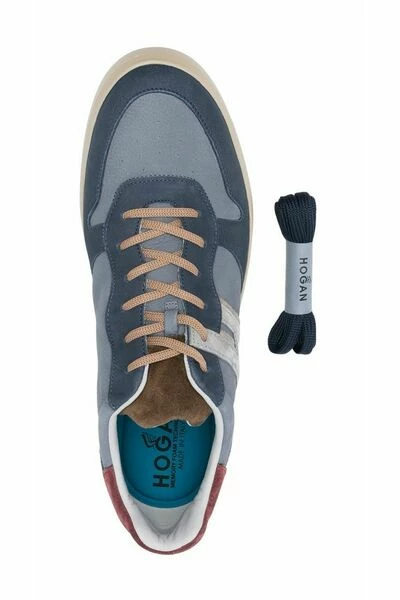 Hogan Sneakers Gray Rebel low-top sneakers van Hogan met blauw, kalf leer, logo-patch naar de zijkant, ronde teen, veterbepaling vooraan en platte zool.