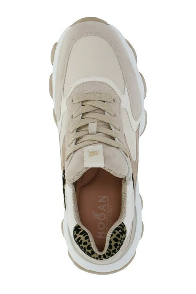 Hogan Brown – Black Hogansuede lederen sneakers voor vrouw – Suede leer en ingekommeerde stofdetails met dierlijk patroon – ronde teen – voorvakjes bevestiging – zijde reliëf Hogan – Intern traagschuim fussbett – verhoogde rubberen zool (5 cm)