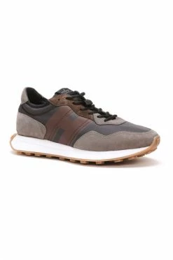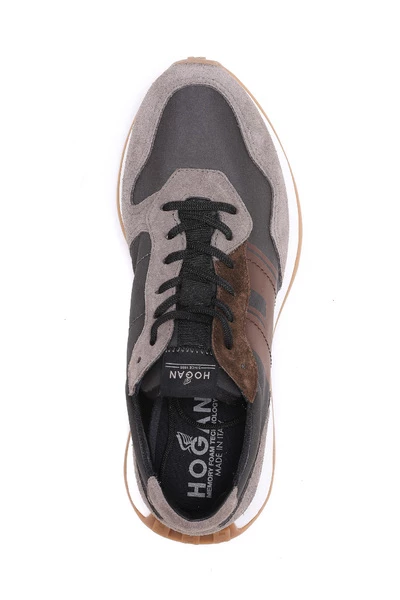 Hogan sneakers bruine man sneakers, rond teen, lateraal logo, trekstring