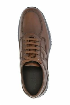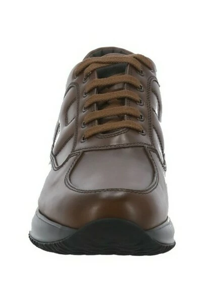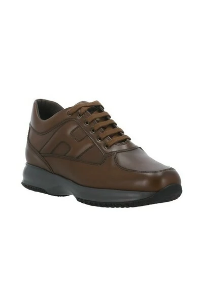 Hogan Sneakers Brown – Bruine Hogan Gladde lederen sneakers voor man – Leters bevestiging – Side Gededed H – Loged Patch at Tongue – Rubber Sole
