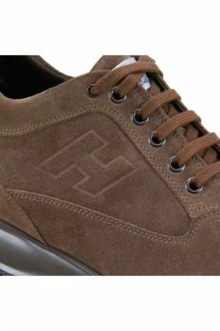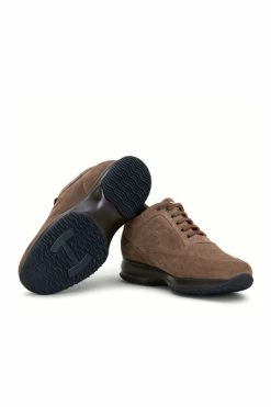 Hogan Sneakers Bruin Marrone Tomaia Interactief in suède met Hogan-monogram in reliëf op de zijkant. Casual elegantie. Ruime pasvorm Hogan Interactive sneakers voor heren Made in Italy Suède bovenwerk Zichtbare stiksels met Hogan-monogram in reliëf op de zijkant Uitneembaar voetbed 2 cmRubberen buitenzool Inclusief onderhouds- en onderhoudstag Inclusief merkstofzakje
