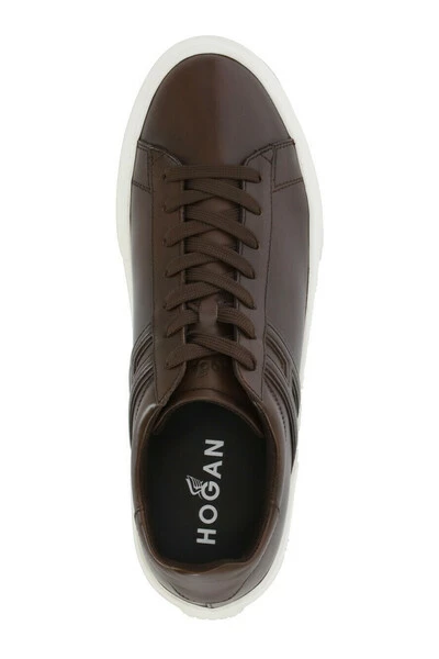 Hogan Sneakers Brown – Brown Hogan Split Borde Leather Men S Sneakers – Round Teen Tip – Veter Up bevestiging – Gegraveerd Hogan -logo op tong – zij iconische H – Zichtbare bovenste tditches – Contrasterende kleur Rubber Sole – Verwijderbare Fussbett (16 mm)