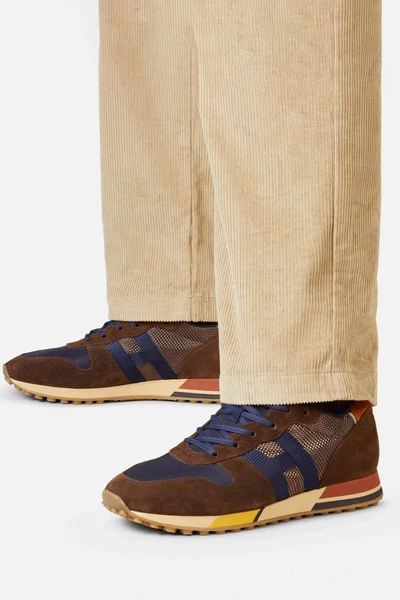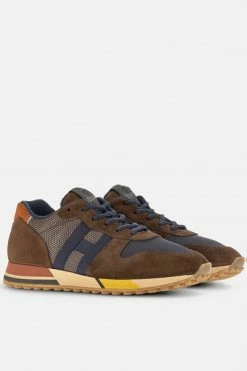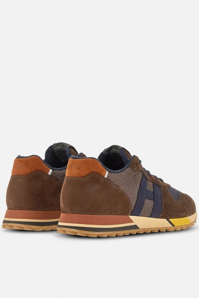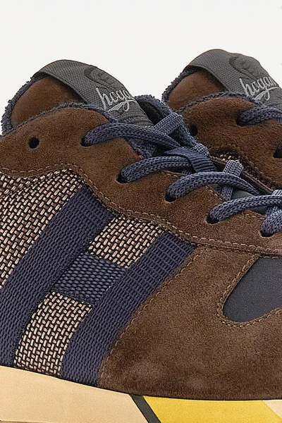 Laterale grosgrain-H stofbeschermingszak blauwe veters gele accenten op het enige materiaal Zorgmateriaal: inzetstukken gemaakt van technisch weefsel en nubucle leer bovenste materiaal: VelourSlede Sole: rubberen details gemaakt van gelamineerd lederen voetbed 5,3 mm totale hoogte 4 cm zorg. Details bevatten details: Brown, Blue Made In: Italy Style No.: HXM3830KK746R Het model valt een beetje groter uit, we raden aan om een ​​half nummer kleiner te kiezen