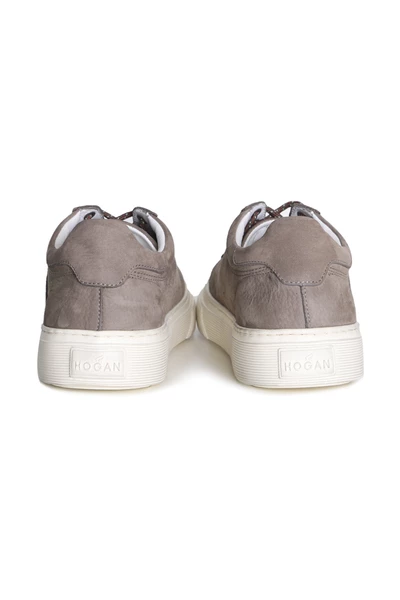 Hogan Sneakers Brown -Upper in Fine Nubuk -H Decoratie in ton Sur ton Relief -rubber Sole -Made in Italië -colour: bruin, wit