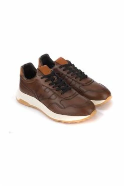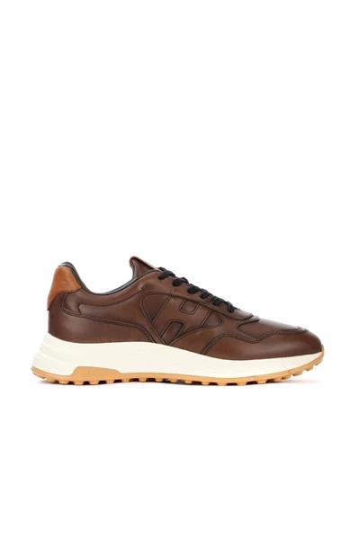 Hogan Sneakers Hyperlight Brown Leather Model met lederen details. Fussbett in traagschuim rubberzool 2,5 cm gemaakt in Italië