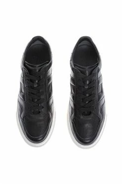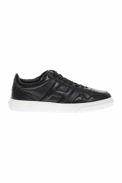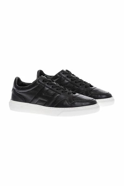 Collectie Schoenen Black Sneakers ;Cassetta; Hogan in nappaleder met uitsparingen, perforaties en ;h; opgevuld aan de kant. De Neus is en blanco gom.