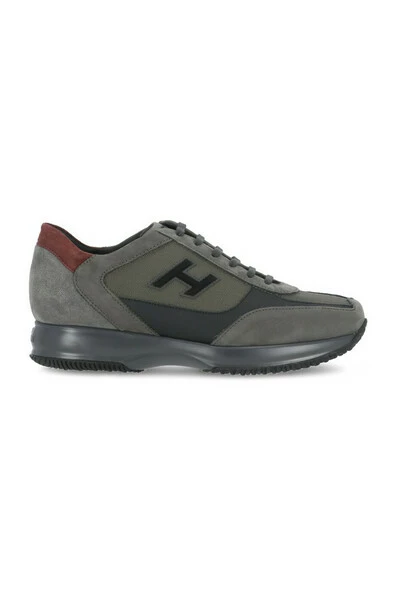 Hogan Sneakers Gray – Gray Hogan Fabric en lederen sneakers voor man – suede lederen ronde teen – voorste toon op toon veters bevestigen – tech fabric -inzetstukken – geborduurd Hogan -logo op tong – iconische zijde h – zichtbare bovenste steken – Verhoogde rubberen zool (3 cm)