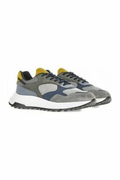 Punt: RoundColor: Grijs, Geel, Blauwe Leuning: Lacimateriaal: Suede Interieur: Leer/Other Fibasata: Memory Foamsuola: Rubber Height Sole: 4,5 cmdogli: sneaker gemaakt van suede en technische stof, contrasterende naden, met een fussbett in geheugen Foam 8 mmmade In Italië