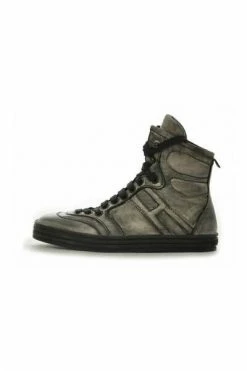 Hoge lederen sneakers verlichting tot 11 passerende alternatieve snaren opgenomen in het geschreven pakket Hogan Rebel gedrukt op de interne ronde tip voorkant in vintage stijl stofstijl Materiaal: 100% lederen kleur: ivoor gemaakt in Roemenië Maatregelen: Cut in Foto`s: 35 Hoogte Peens: 11 CM -omtrekpoot: 22 cm Hoogte Hoogte: 2 cm