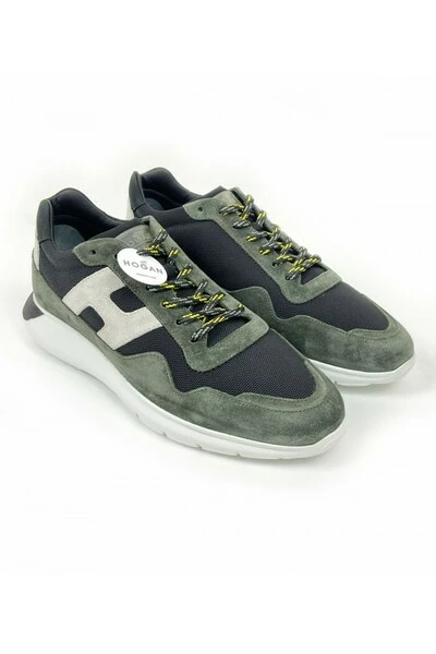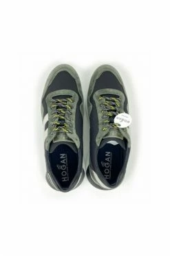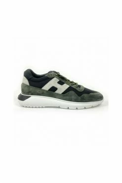 Hogan sneakers. Kaki sneakers gecombineerd in zwarte en gebroken witte details.