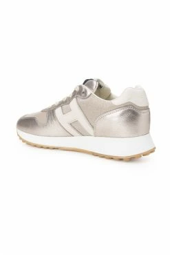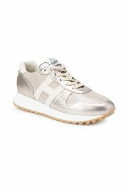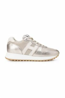 Hogan sneakers grijze sneakers gemaakt van metallic leer met glanzende en technische stoffen inzetstukken. Zijkant H en gladde lederen details, 5 mm interne fussbett en rubberen zool.