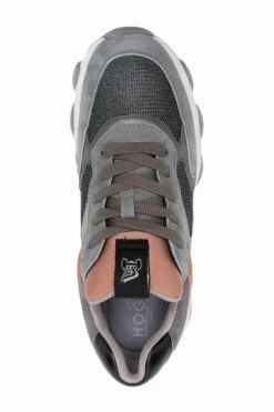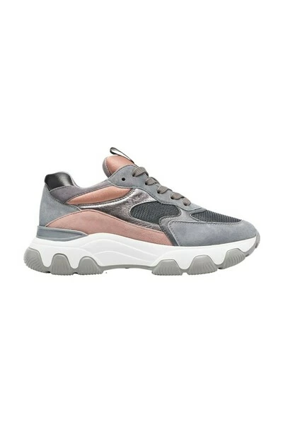 Hogan sneakers lage sneakers low-top sneakers van Hogan met grijs, roze, kuitleer, kalfsuede, kleurblokpanelontwerp, amandel teen, veterbevestiging vooraan, amandel teen, veterbevestiging vooraan, logo-patch bij de tong, In binnenzool en platte rubberen zool.