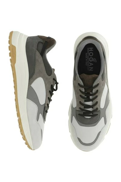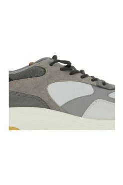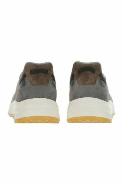 Sneakers gemaakt van suede leer en technische stof frontsluiting met veters glad korrelig lederen inzetstukken logo in reliëf aan de zijkanten en tong panelen ontwerp rubberen zool grijs gemaakt in Italië